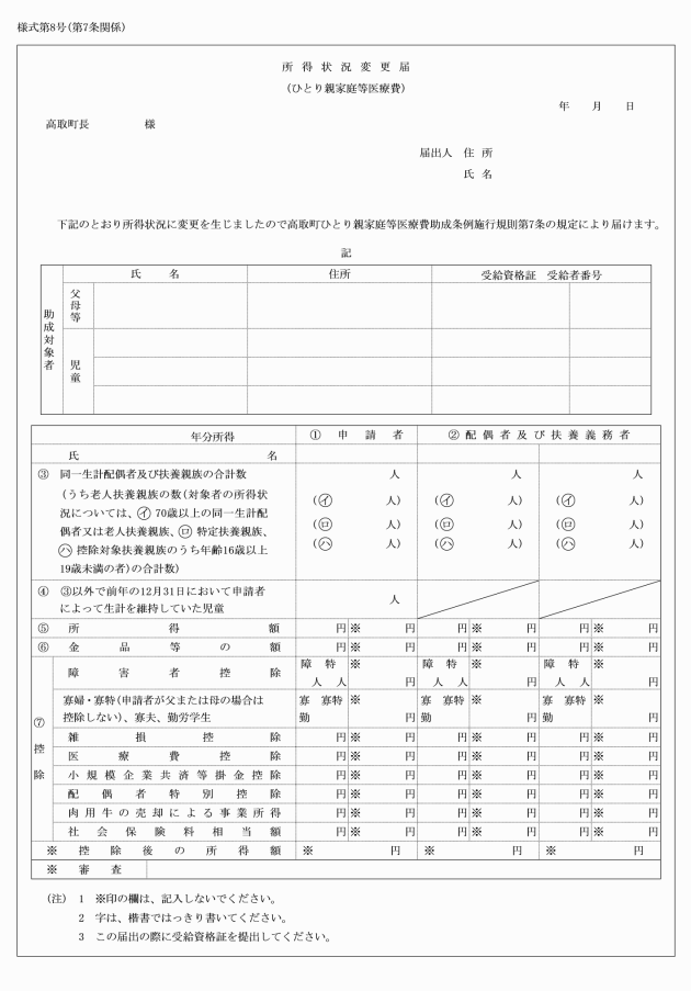 (3) 対象者の所得状況に変更が生じたとき 所得状況変更届(様式第8号)