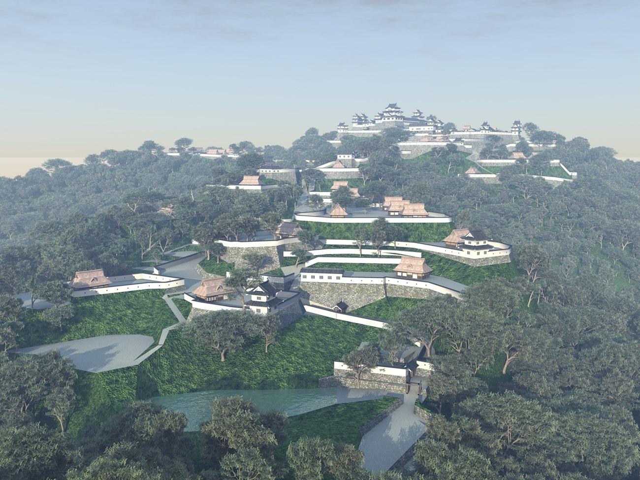 ▼Takatori Castle after renovation by Hidenaga (CG reconstruction project by Nara Sangyo University, now Nara Gakuen University)